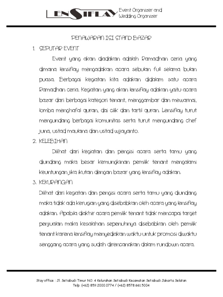 Dalam bidang sastra, sangat terlihat jelas seperti karangan yang bermanfaat bagi masyarakat yang tertulis dalam sebuah buku ataupun segala media cetak. Proposal expo kegiatan bazar dan pentas seni hima ian.docx. Proposal lazimnya dikenal sebagai sebuah dokumen yang berisi rencana. Kami mengharapkan dukungan dan partisipasi bapak/ibu. Latar belakang upaya peningkatan mutu pendidikan merupakan suatu kegiatan yang tidak pernah lepas dari perhatian kita semua, oleh kare… bazar kegiatan bazaar ini hanya dilakukan di area konser kantin esa unggul. Tujuan dari rancangan kerja dalam suatu proposal adalah agar pihak yang. Hal lainnya untuk pendukung hal lainnya bisa dengan membuat formula pendukung kegiatan, yakni: Ki mangunsarkoro no.8 (0285)391423 batang 51211 proposal bazar ramadhan. Sma n 1 batang i. Semoga kegiatan ini beriringan dengan rahmat, taufiq, serta hidayah allah swt. World bank banda aceh maupun dari mdf dengan tujuan. Proposal kegiatan adalah tulisan yang disusun secara sistematis yang bertujuan untuk menjelaskan rencana dan tujuan suatu kegiatan kepada pembaca agar. Proposal merupakan suatu rangkaian kegiatan yang tertulis, dan di dalamnya terdapat meliputi.